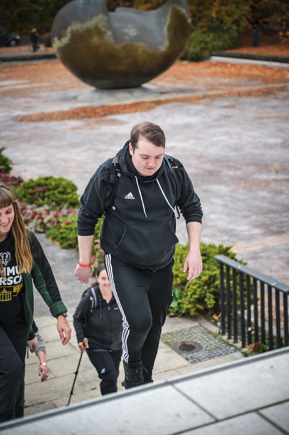 Zwei Frauen überholen ihn. Eine sagt lachend: „Meine Füße freuen sich auf die Couch.“